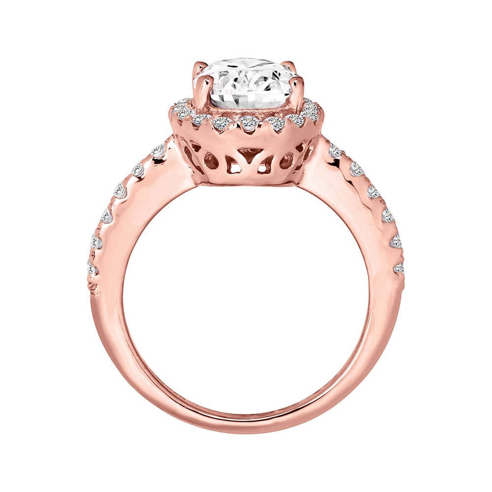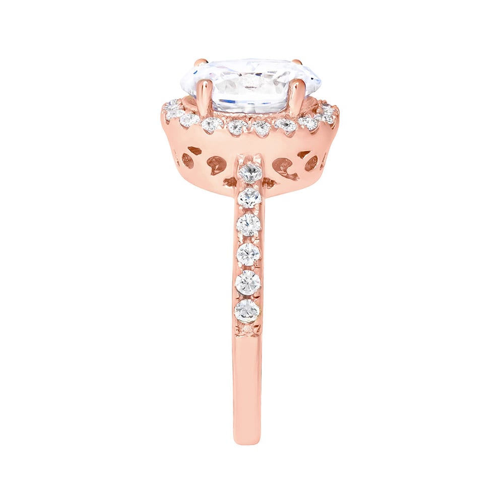 This exquisite ring is timeless and classic with a center stone approximately 2.5 carats and is faceted as the finest estate diamond. Bling by Wilkening rose gold plating is four times thicker than the industry standard to ensure unparalleled quality and durability. Please contact Gallery for available ring sizes.
