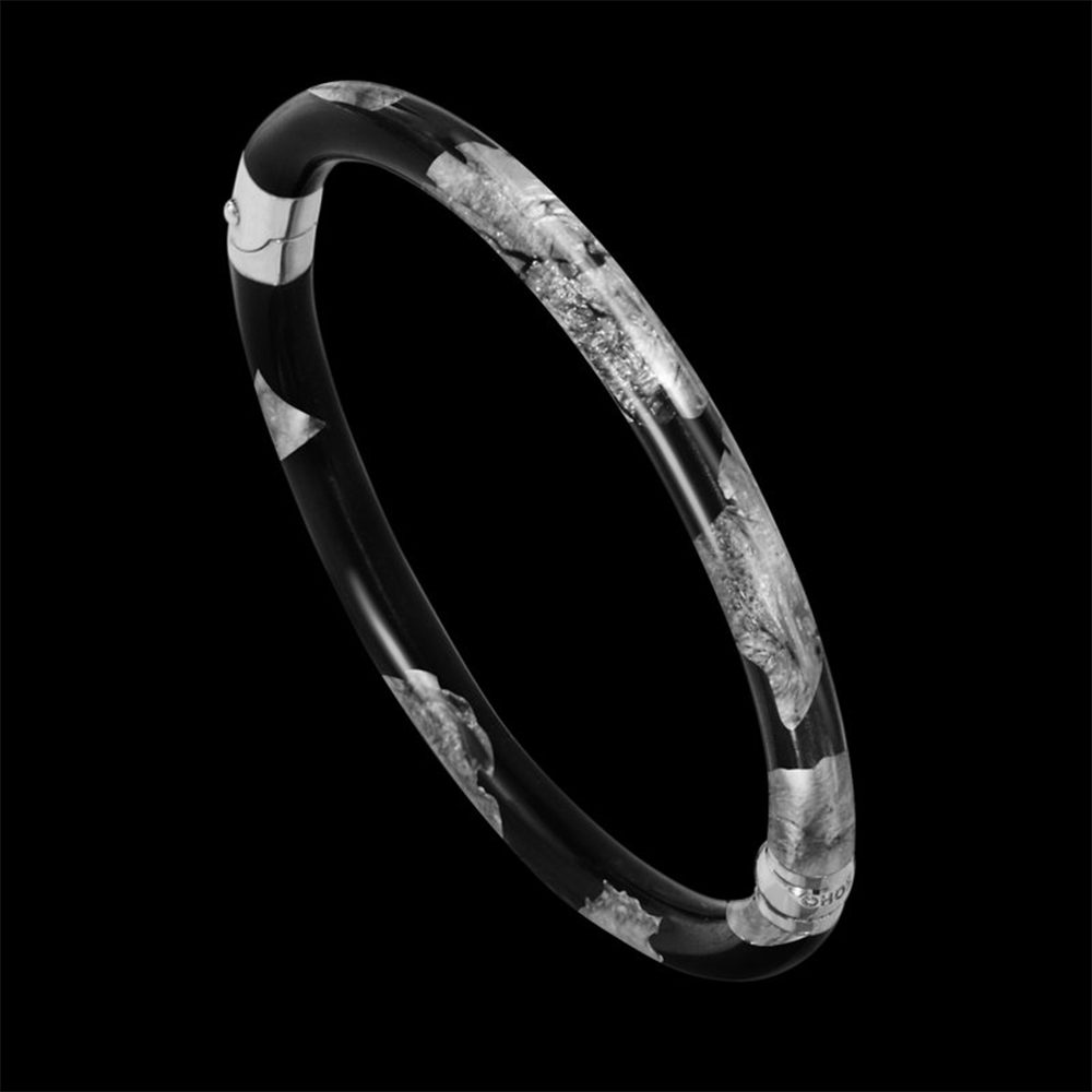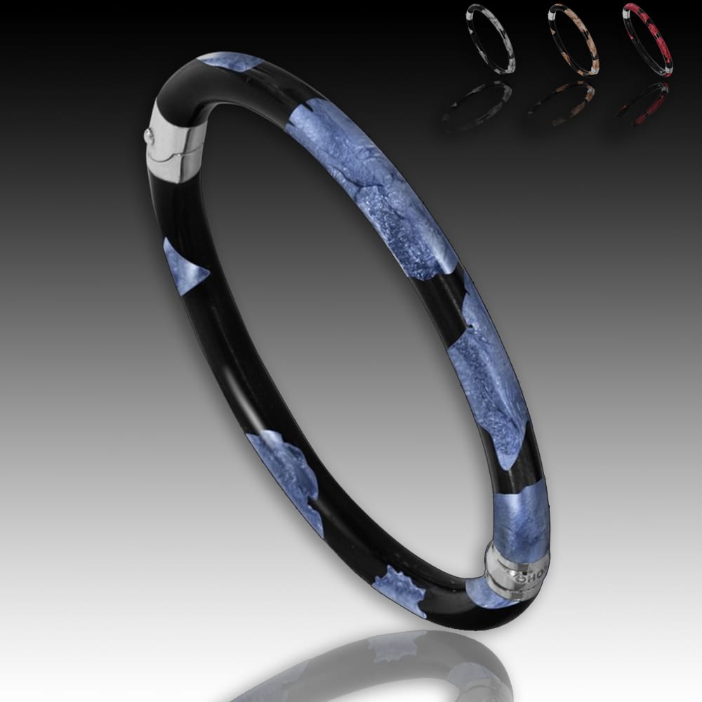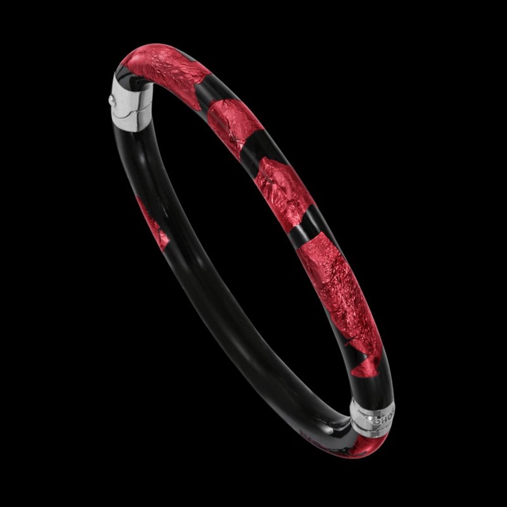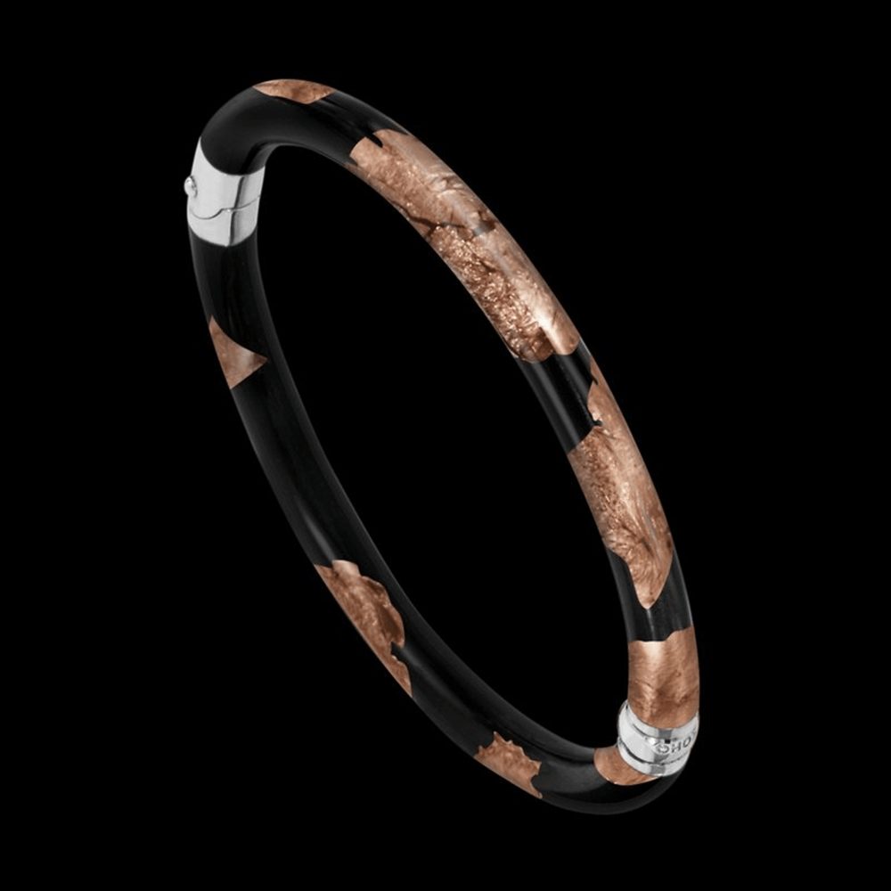 Please inquire with gallery for more information. | Sterling Silver and Italian enamel hinged bangle with pigmented gold leaf inlay. Available in 4 color options: Sapphire, Silver, Rose Gold, and Ruby.