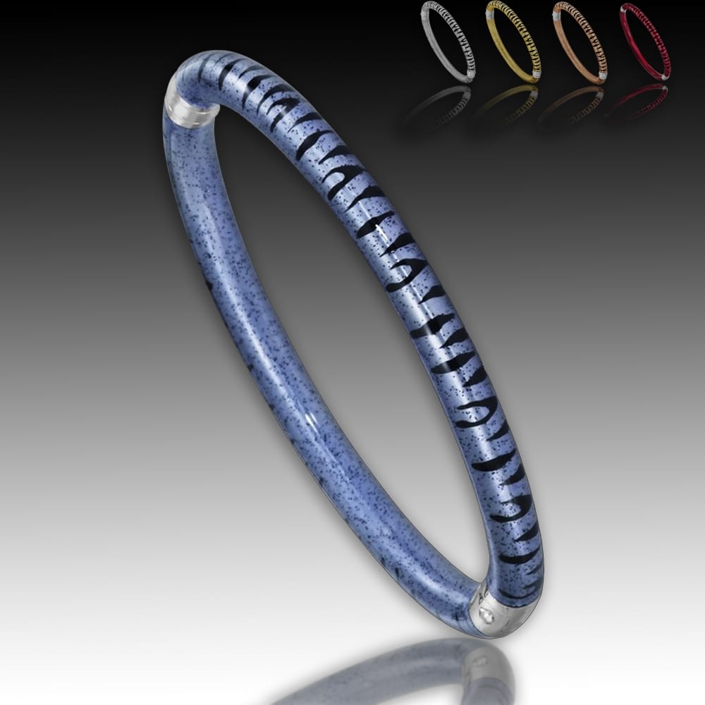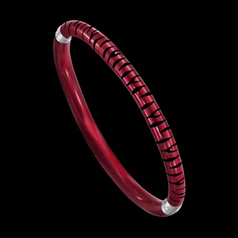 Please inquire with gallery for more information. | Sterling Silver and Italian enamel hinged bangle in tiger stripe pattern. Available in 5 color options: Sapphire, Silver, Gold, Rose Gold, and Ruby.