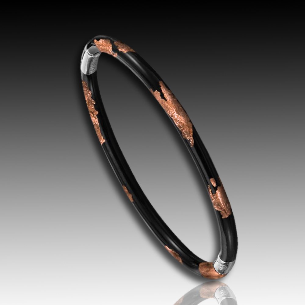 Sterling Silver and Italian enamel crocodile clasped bangle with color pigmented gold leaf inlay. Available colors are: Silver, Blue, Pink, Rose, and Red.