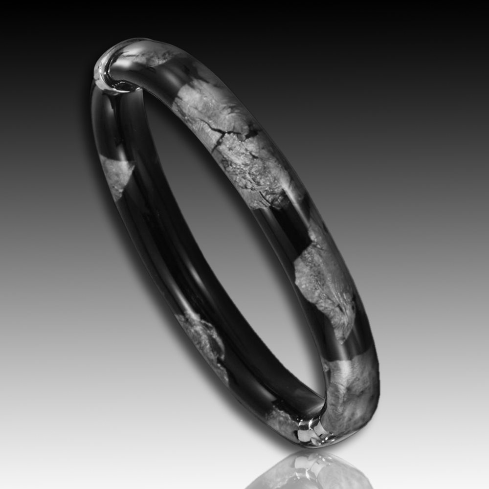 Sterling Silver and Italian enamel hinged bangle with pigmented gold leaf inlay. Leafing color options are: Rose Gold, Blue, Silver, Red, and Pink.