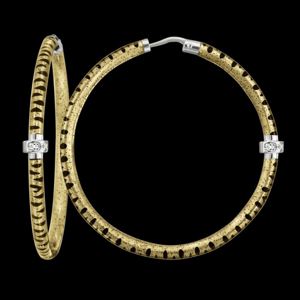 Please inquire with gallery for more information. | Sterling Silver and Italian enamel hoop earrings with silver pigment in tiger stripe pattern and .14 ct. tw. of diamonds.