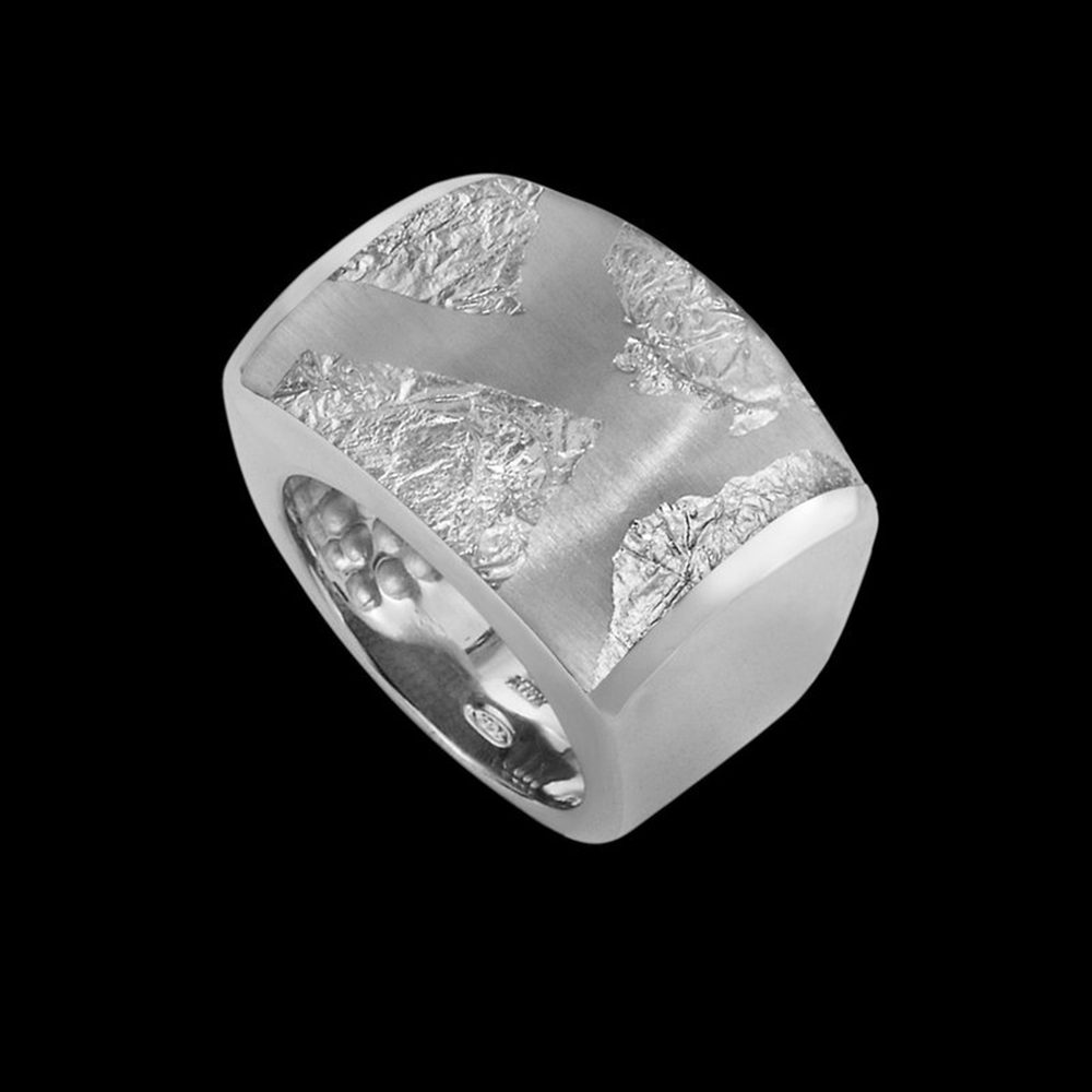Please inquire with gallery for more information. | Sterling Silver and Italian enamel ring with pigmented gold leaf inlay. Available in 4 color options: Sapphire, Silver, Gold, and Ruby.
