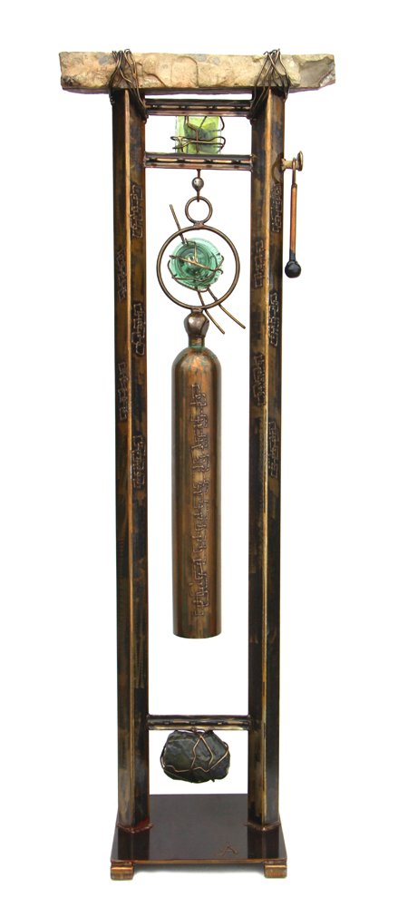 Doug Adams started working for a large steel mill. He quickly became entranced by the process of taking recycled metal from its simple form and making a new useable product. From the 65 ton electric arc furnaces spewing out molten steel, to the continuous caster cutting steel weighing 1.5 tons into 25’ lengths, to the final result of dozens of marketable steel shapes, Doug fell in love with steel. The work was hot, dirty and often times dangerous to perform. Fast forward 30 years, and Doug Adams’ experiences in the steel industry have come to inform all of his one-of-a-kind sculptural bells.