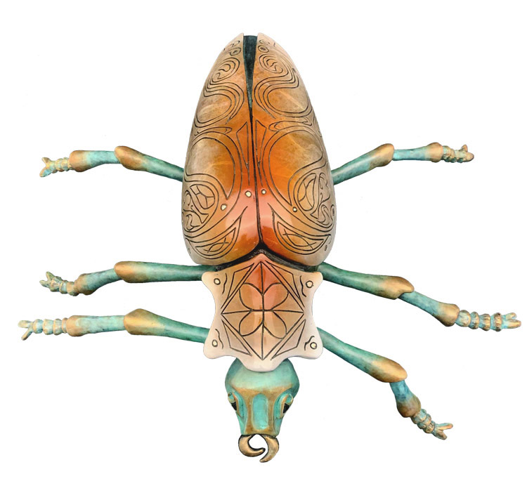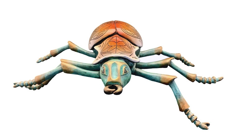 The Bohemian Beetle was originally inspired by Egyptian scarabs. While working on the piece Kristin’s imagination took artistic license with a paisley inspired pattern on the shell. Insects have always been interesting to Kristin. They are almost like jewelry in nature, so many colors and designs, so complex yet small enough to go unnoticed. This beetle can’t go unnoticed though, if he walks through your living room he’ll steal the show.