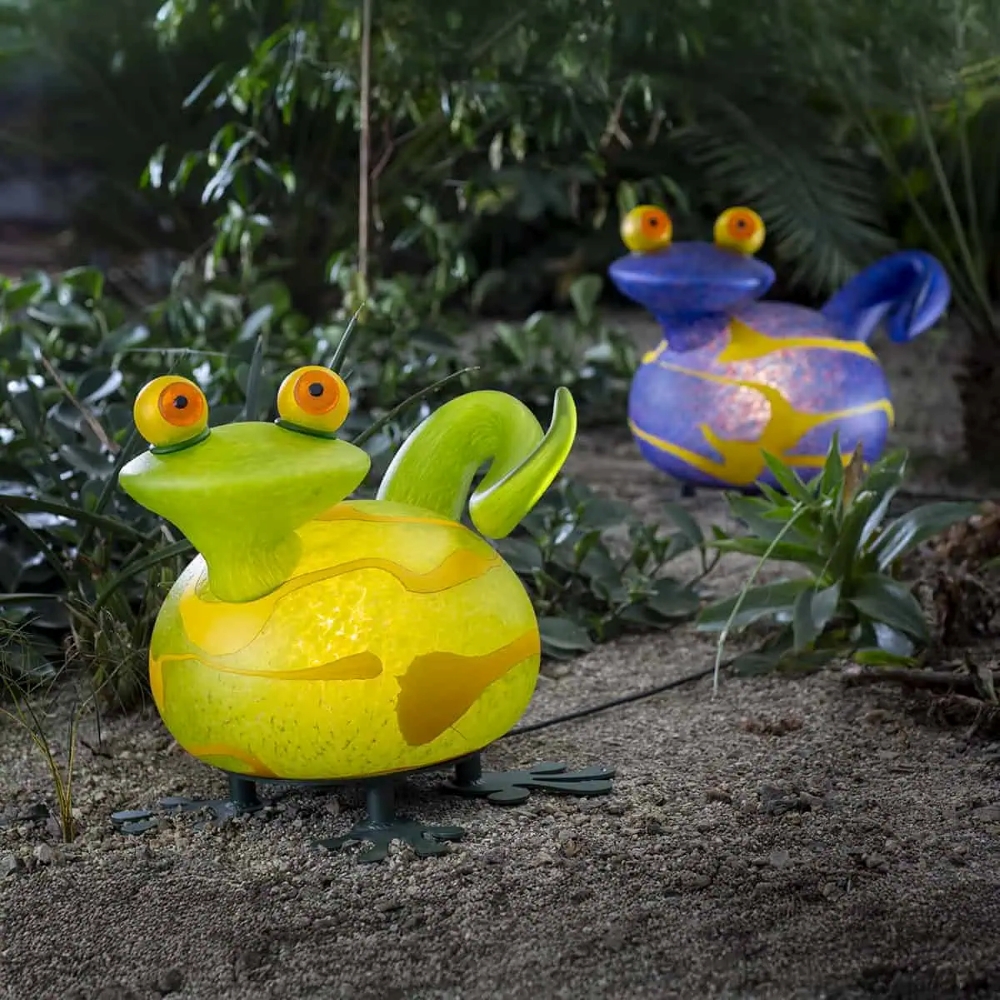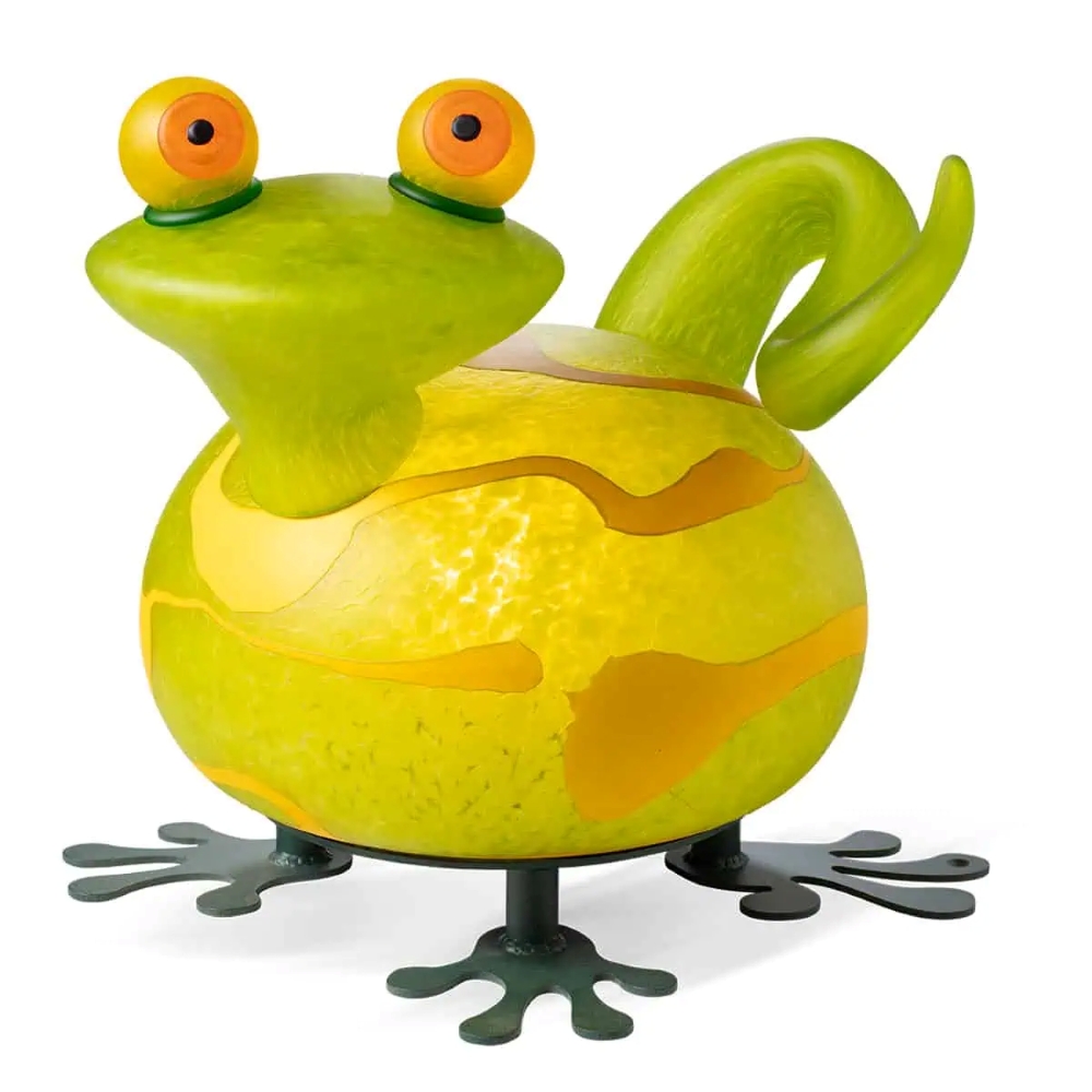 This hand-blown glass sculpture is available to order in the following colors: Violet & Lime Green. In popular belief, the fire salamander had an ambivalent reputation – both fascinating and feared. In antiquity, it was believed that it could live in fire without being burned. For alchemists, it represented the purifying, transformative element of fire.