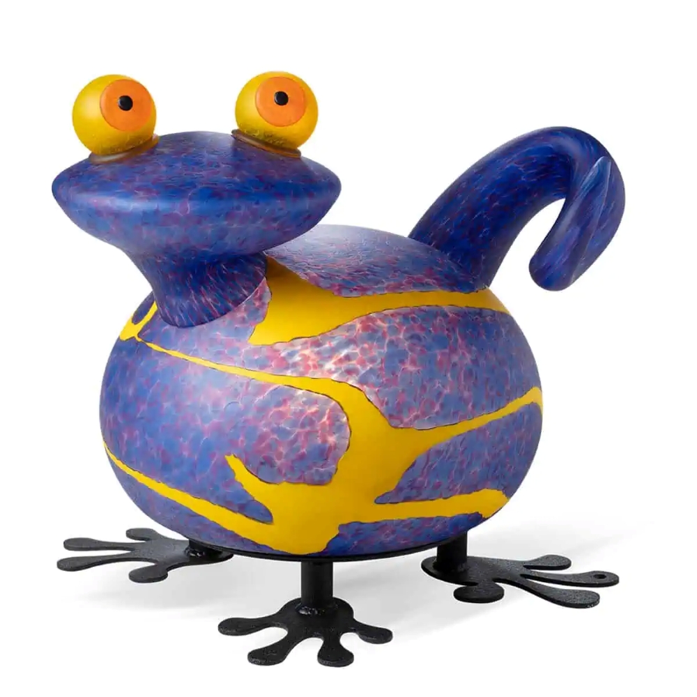 The plump, overly ample body is accentuated by attractive contrasting stripes. The short, curled tail stands out amusingly. And then there’s the head: elliptically shaped, with round eyes that seem to gaze at you brightly and curiously. It’s somewhat reminiscent of a charming retro sci-fi alien from the 1950s – friendly, inquisitive, and completely harmless. In its surroundings, Bubba acts like a special guest – striking, yet charming. Among plants in the garden, on natural stone, or near a water feature, it makes a deliberate statement. Its exotic appearance is ever-present, yet never seems out of place or contrived. This is thanks to its rounded shape and alert, almost friendly gaze. It creates an immediate sense of connection and warmth – you might even have to resist the urge to pick it up!