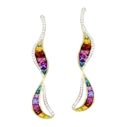 From the ‘CAPRI COLLECTION’ one custom designed pair of earrings set in 14kt Yellow gold. The earrings contain 0.40ct of genuine Diamonds and 5.22ct of combination of genuine Multi Color gemstones.