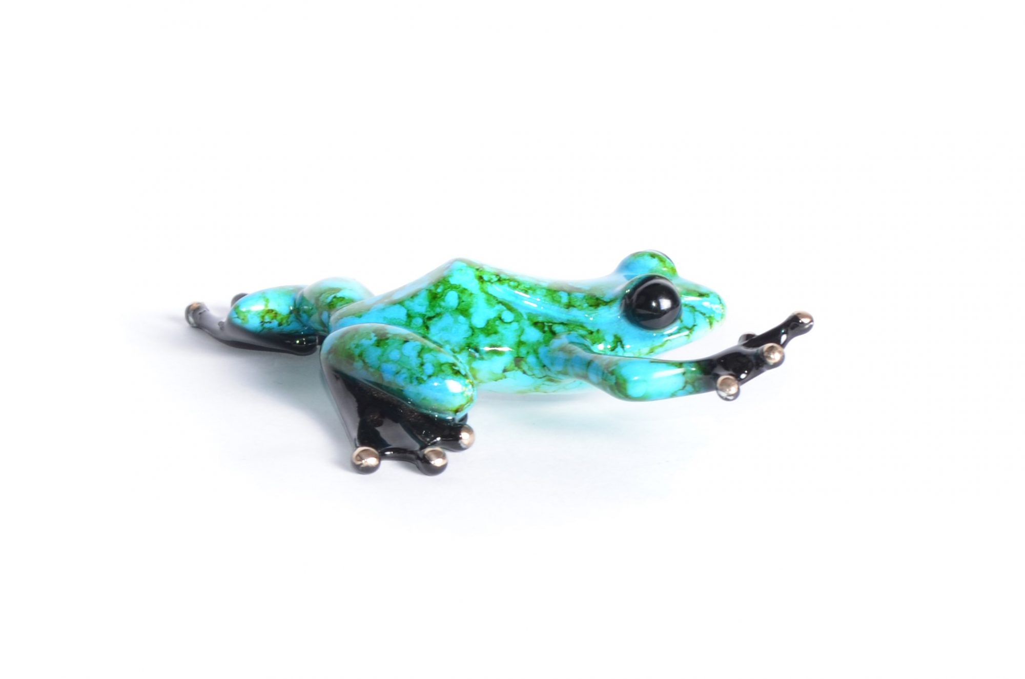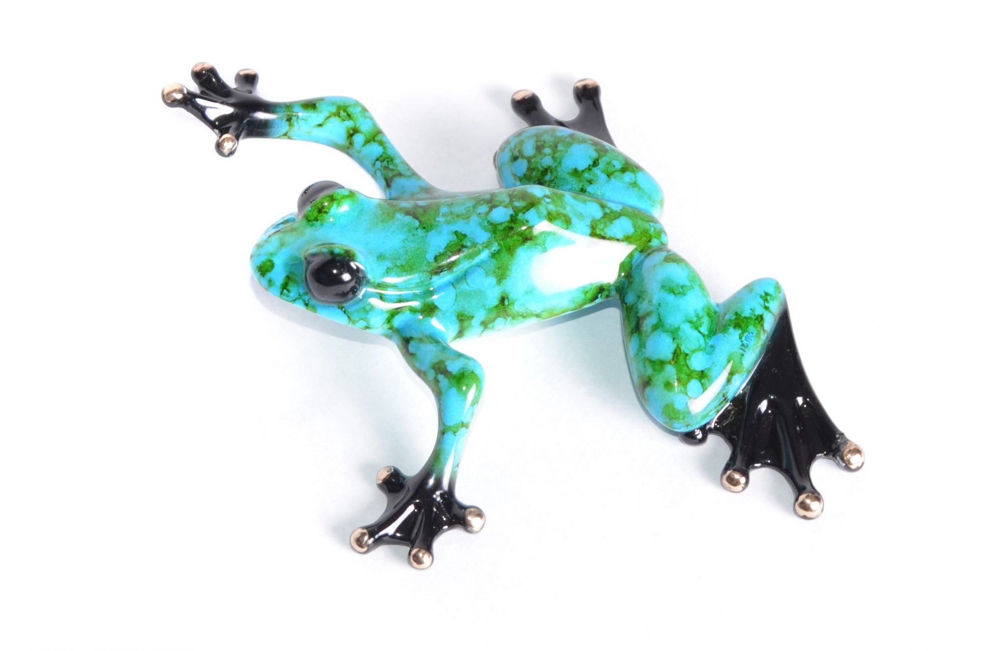 Over 1000 original steel, bronze, and gold sculptures by Frogman have been sold worldwide; many though Sotheby’s auction house in London. He immigrated to California in 1990 and has sold his art all across America. He has now fully focused on his Frogs. He developed a love for the frog’s unique, bulgy-eyed beauty. His bronzes capture the whimsical character; the jewel-like quality, and the pure job of these little creatures. He incorporates the expression, contour and subtly of these amphibians into his work, and no two will ever look exactly the same. Variations in coloring should be expected and appreciated.