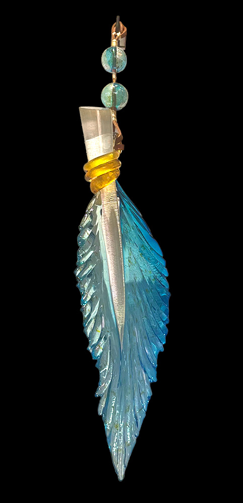 “The glass is alive when it is hot, it has a mind of its own and a memory. It has a mysteriousness about it that captures our curiosity. Hard like a rock, yet as transparent as the air we look through. The molten glass has exotic properties compared to other materials you come into contact with on a day to day basis. It glows with a brilliance of color and emits an enormous amount of heat that challenge me as a sculptor to find a way to control these extreme properties in order to achieve a finished piece of art. I make my sculptures to be meaningful objects to live with. Through experiences on this earth and what I have seen, what I have been shown by others and that which I have learned all influence my art. The sculptures you see are the ideas which I have attempted to bring forth from my imagination into this reality. Inspired by intriguing patterns found in nature and the amazing relationships shared by all living things I make art to share the beauty of life with others.” – Nic McGuire