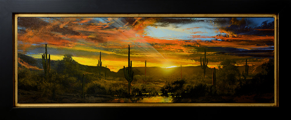 Dale Terbush was born in Chicago but spent the rest of his youth in Southern California. Dale discovered early on that painting was his life’s calling. Through this passion, he developed a deep desire to excel in his creativity. Dale’s art is electrifying, exciting and bold. Dale paints a mood and creates a scene of pure magic. With changing light from dim to bright the paintings appear to come to life, as if the sun rises or sets along the horizon.
