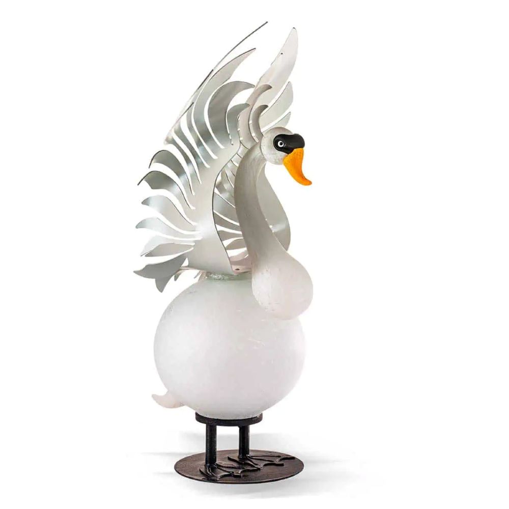Until now, the swan’s image has been more romantic, pure, and gentle, which Borowski’s artists have already captured in two glass bowls. But the swan also has a proud, defensive side that has commanded respect from many an unsuspecting park visitor. With its long neck proudly stretched upwards, the imposing animal presents its brilliant white plumage, made of steel with a white powder coating. But whether romantically playful or proud and majestic, this swan is a shining symbol of lifelong loyalty and also extremely decorative in your garden!