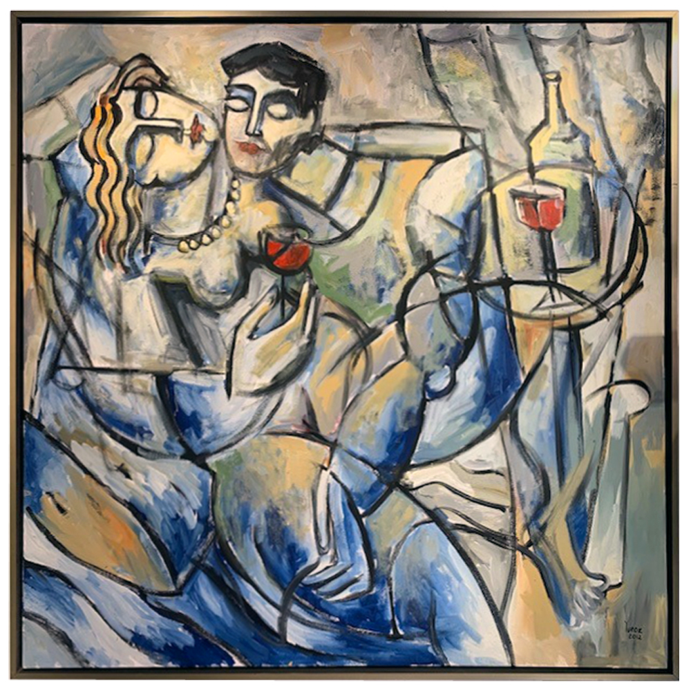 Collectors love Yuroz’s cubist style – so reminiscent of Picasso – as well as his recurrent themes of love and companionship. The artist’s own hardships only serve to make him more appreciative of the tender moments shared between friends and lovers. Drawing on his Armenian heritage, Yuroz incorporates the imagery of the pomegranate into his art, as well as other symbols, such as the blue rose, the book of poetry and the guitar without strings. Each element tells a part of the story, illuminating the nature of the relationship between the characters and what the future holds for them.