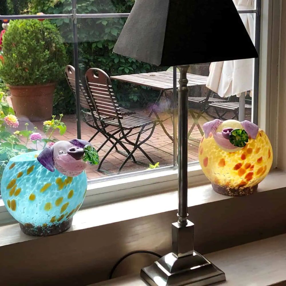This hand-blown glass sculpture is available to order in the following colors: Yellow, Blue.