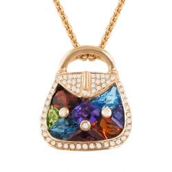 From the ‘MADEMOISELLE COLLECTION’ the enhancer is set in 14kt Rose Gold and contains approximately 1.11ct of genuine Diamonds and 24.75ct combination of genuine Rhodolite gemstones. Each piece of Bellarri jewelry in hand-crafted to an exclusive design with precious gems from around the world, and made in limited editions.