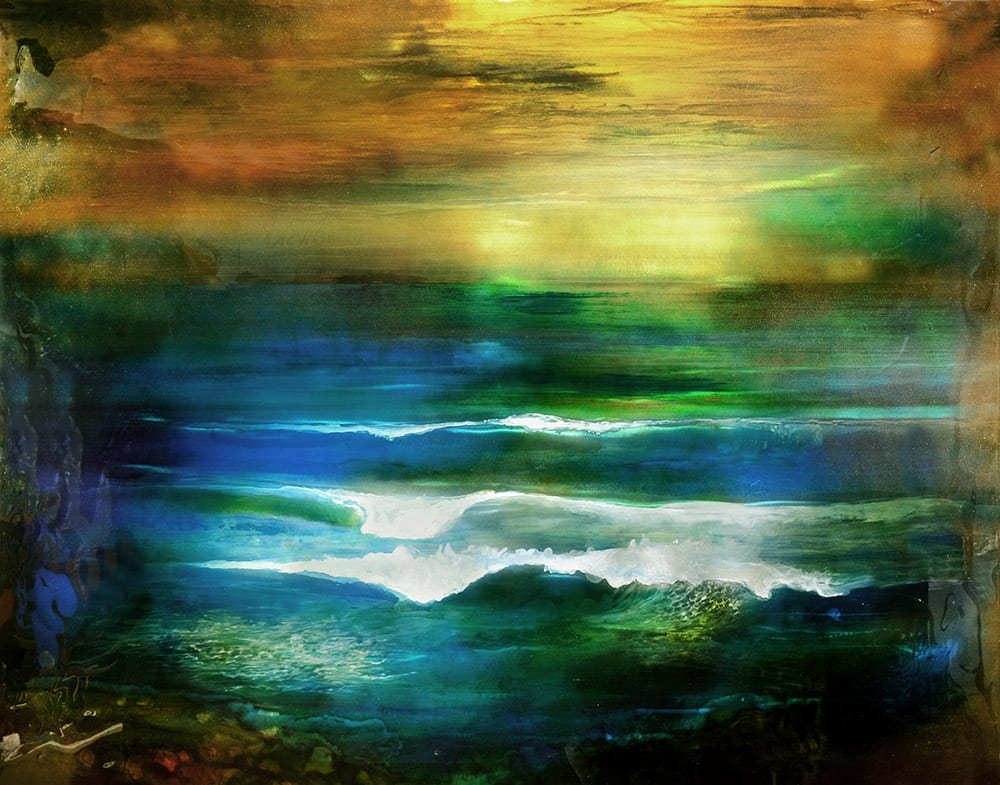 Lynn Demiurge brushes steel canvases, transforming them to reflect highlighted prismatic depth of color. It can take him days, or even weeks to choose paints, patinas and other materials that are carefully selected to reflect the inner voice of that one piece of art before he ever begins to paint. Lynn is moved by the natural beauty and color found in nature. His love for the southwest and multiple travels to the Caribbean has inspired him to meld ocean movement with high desert color. The muse of nature transports new complexities within his steel canvases. It is this awe of color and light movement that continues to press Lynn to create new art pieces and keeps him in the studio. “I hope you are taken on a daily journey with each piece,” says Lynn