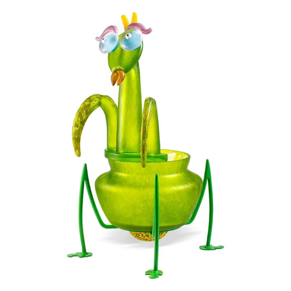 An extraordinary design object for stylish accents. With its captivating shape and vibrant color, the “Miss Mantis” designer glass bowl is a masterpiece of glass art. Inspired by the elegance and grace of a praying mantis, it combines playful lightness with expressive aesthetics. Every detail, from the artfully curved legs to the delicately crafted eyes, gives this object a unique personality.