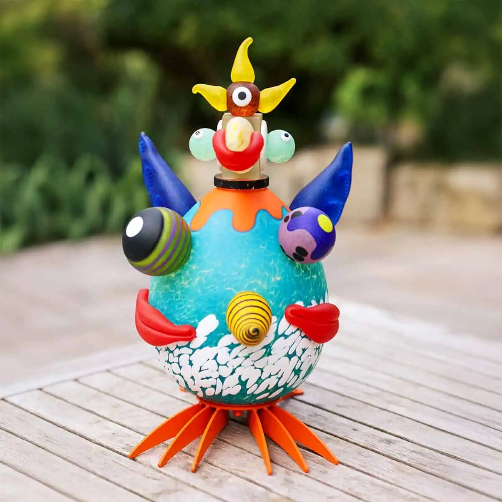 The Niki glass object is a radiant art quote. Inspired by the world-renowned artist Niki de Saint Phalle, it captures the characteristics that make her work so distinctive: bold colors, voluptuous shapes, playful patterns, and an unbridled joie de vivre.