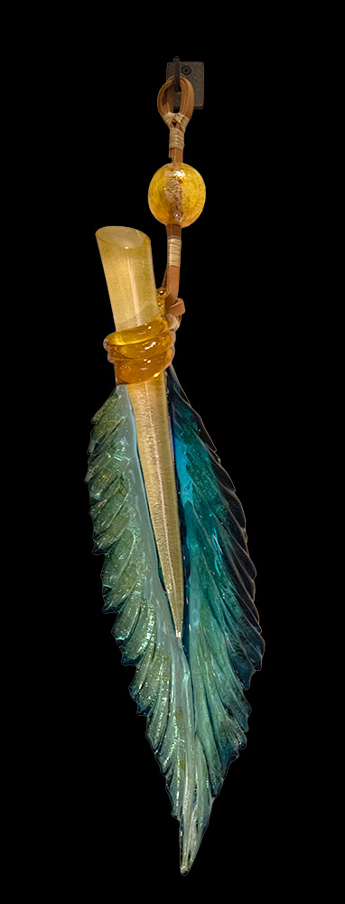 “The glass is alive when it is hot, it has a mind of its own and a memory. It has a mysteriousness about it that captures our curiosity. Hard like a rock, yet as transparent as the air we look through. The molten glass has exotic properties compared to other materials you come into contact with on a day to day basis. It glows with a brilliance of color and emits an enormous amount of heat that challenge me as a sculptor to find a way to control these extreme properties in order to achieve a finished piece of art. I make my sculptures to be meaningful objects to live with. Through experiences on this earth and what I have seen, what I have been shown by others and that which I have learned all influence my art. The sculptures you see are the ideas which I have attempted to bring forth from my imagination into this reality. Inspired by intriguing patterns found in nature and the amazing relationships shared by all living things I make art to share the beauty of life with others.” – Nic McGuire