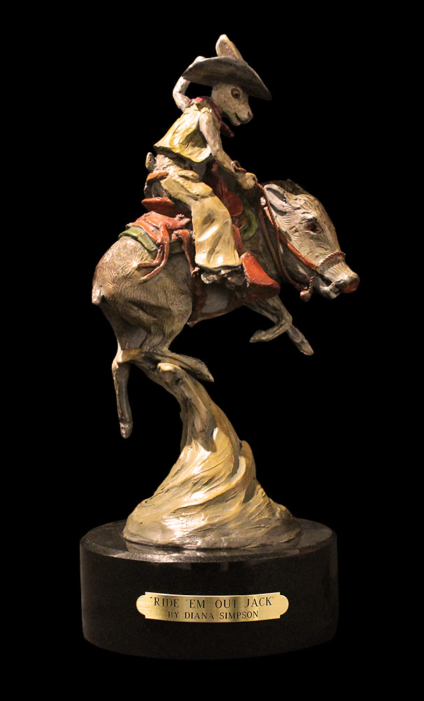Sculptor Diana Simpson’s bronze animals are a joy to encounter! They are amazingly real, true-to-life, and often life size. She is experienced in the timeless art of lost wax bronze, through every challenging step, including the secrets of patina application that transform the bronze surface into something incredibly beautiful. Diana grew up in the American West at a time and place of still-unpaved roads, her days filled with the real life animals she depicts so faithfully through her art.