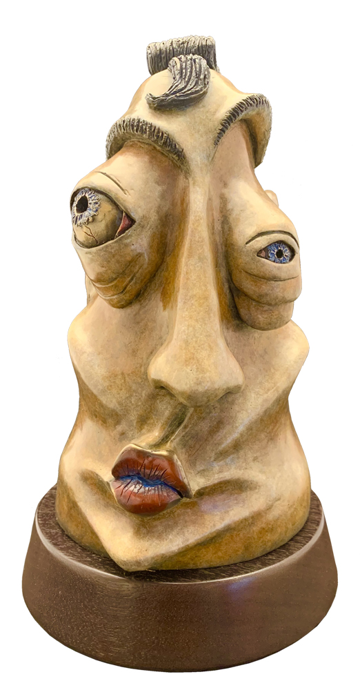 Rupert was Kristin’s first sculpture and was born of an accident. Though it might be hard to see now, Rupert started out as a vase. When you are learning to sculpt there is a lot you don’t know. The armature (underneath support) she used was not strong enough for what was intended, and it broke in half. She had a lot of frustration with the botched artwork, but nothing in art is entirely ruined. A little time and self-expression later Rupert was born. Kristin has found since sculpting Rupert, she really enjoys sculpting faces and abstract expressions. Life does sometimes imitate art however, abstract or not, Kristin once caught pink eye from a friend’s child and looked very much like her Rupert, an accidental self-portrait in the moment.