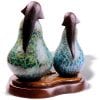 The flat plane that runs down the middle of there body represents the womb. In all aspects of Hopi the perpetuation of life is stressed. The Hopi people are a matriarchal society, where a child’s lineage comes from the mother. In traditional Hopi culture the women own the home, all of the household materials as well as the seeds planted every spring. A man will come to live with his wife’s family after marriage. Her hair is worn in a traditional style of being cut strait across her brow. This represents falling rain and reminds her of the prayers of all Hopi for rain. Her amulet represents clouds and lightening. The Patina represents a full cloud ready to burst with rain. This is the prayer of all Hopi people.