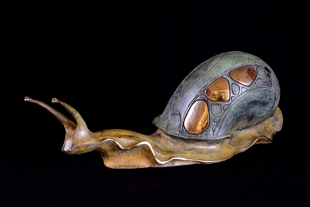 Some of my first sculptures, I created the snail series in honor of my Dad, nicknamed “Snail” for his slow and steady pace. They all represent different journeys in our lives. I first used the Art Nouveau designs on these creatures because I felt they were overlooked and underappreciated, much like my Dad.