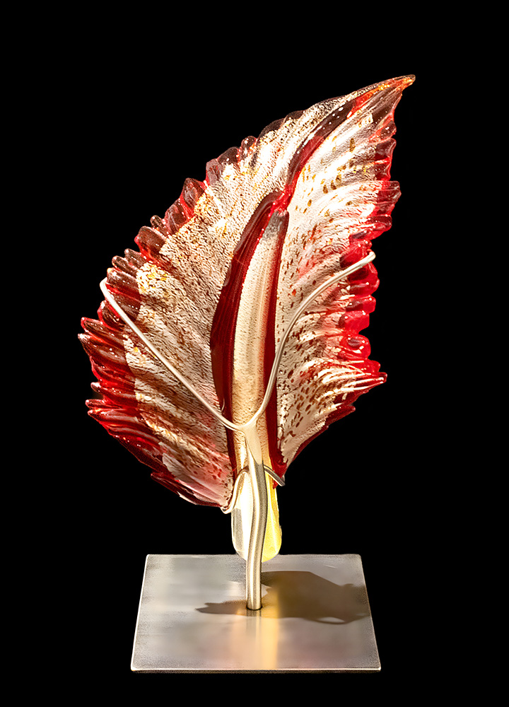 “The glass is alive when it is hot, it has a mind of its own and a memory. It has a mysteriousness about it that captures our curiosity. Hard like a rock, yet as transparent as the air we look through. The molten glass has exotic properties compared to other materials you come into contact with on a day to day basis. It glows with a brilliance of color and emits an enormous amount of heat that challenge me as a sculptor to find a way to control these extreme properties in order to achieve a finished piece of art. I make my sculptures to be meaningful objects to live with. Through experiences on this earth and what I have seen, what I have been shown by others and that which I have learned all influence my art. The sculptures you see are the ideas which I have attempted to bring forth from my imagination into this reality. Inspired by intriguing patterns found in nature and the amazing relationships shared by all living things I make art to share the beauty of life with others.” – Nic McGuire