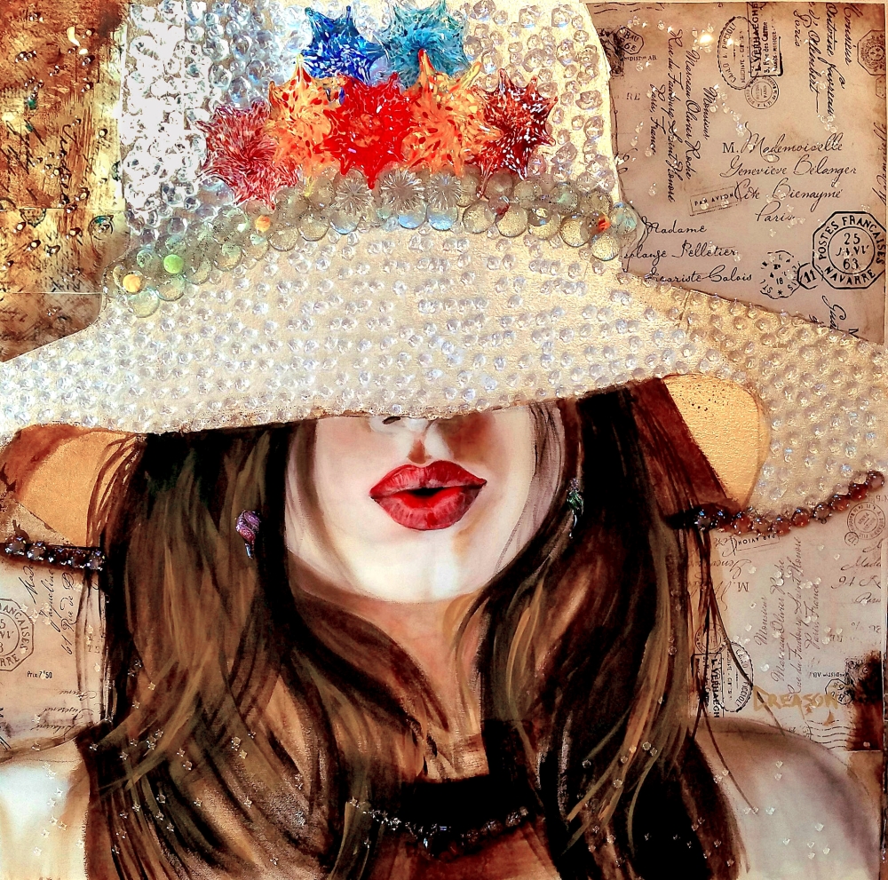 Creason’s works will invoke passion, boundless love, color and awe. His wife is his muse and main inspiration, always motivating him to create artwork that he might not have on his own. Creason chooses to depict women to spotlight their inner and outer strengths, beauty, and mystery. Using found jewelry, hand-blown glass, and garments to embellish his paintings, no two will ever be the same, but will always leave you inspired and entranced by his use of color.