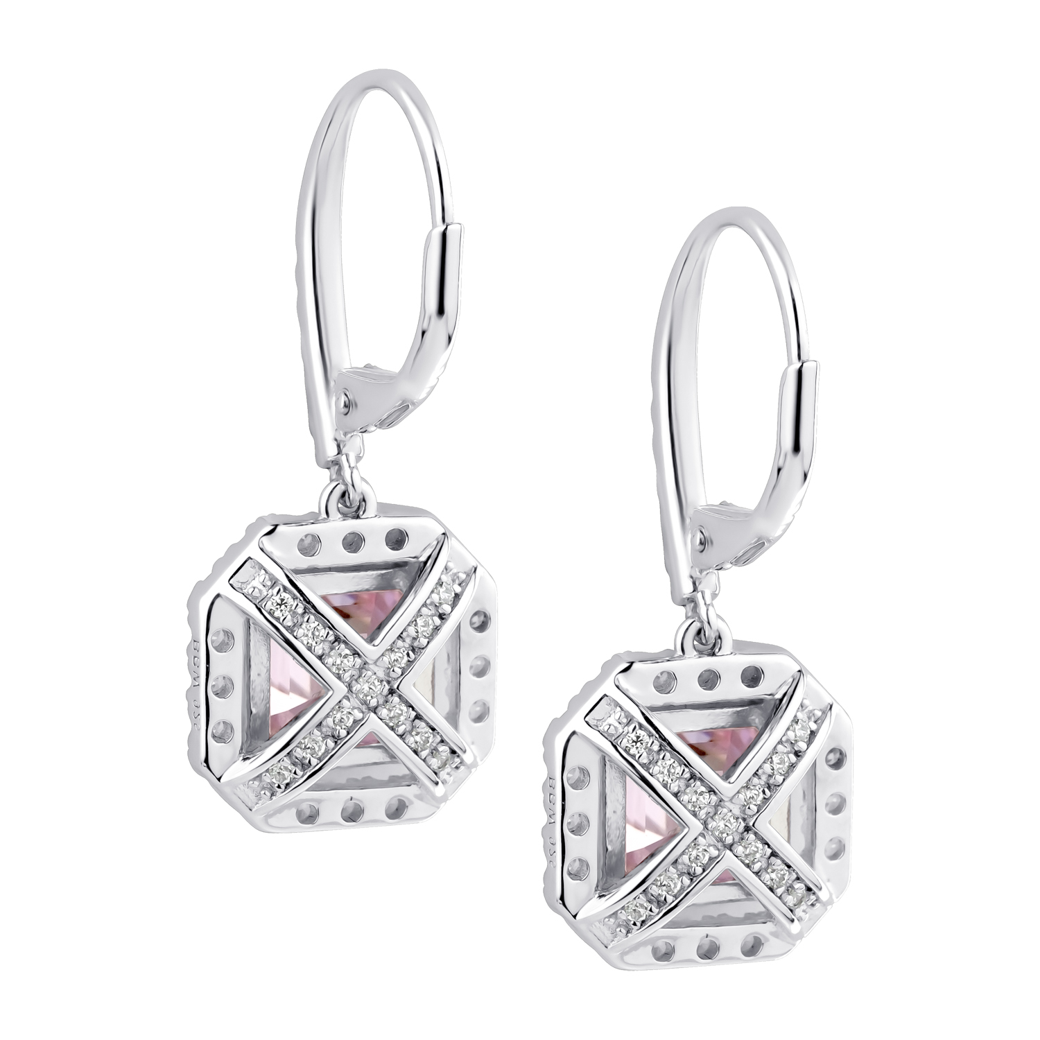 “Sterling Silver Fancy Light Pink Asscher Cut Drops with 18 KGP Prongs & Stone Detailing on Back”