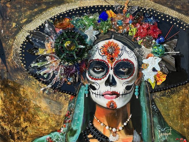 “Sugar Skull IV” is the latest in Creason’s Sugar Skull Series celebrating the Mexican Day of the Dead celebration. “Sugar Skull IV” features La Catrina, the costumed skeleton, which dominates in most Day of the Dead celebrations.