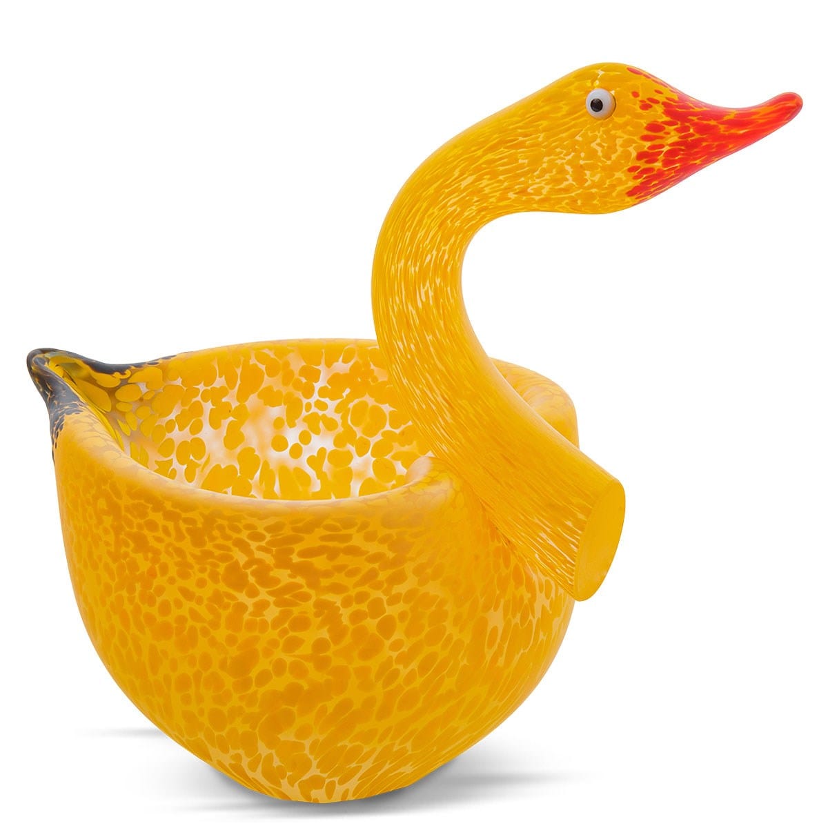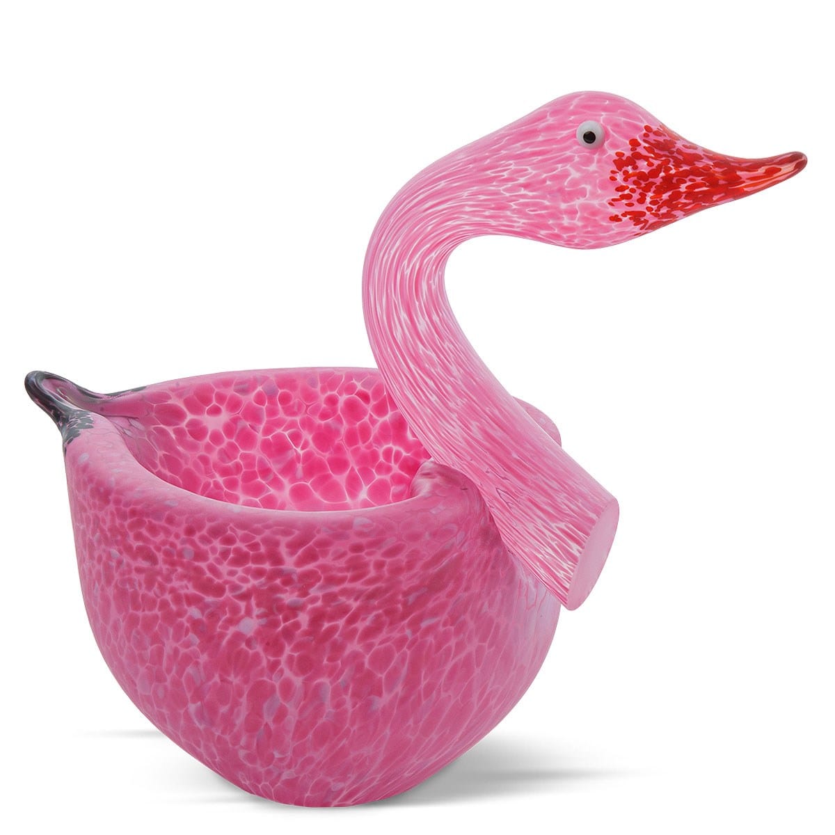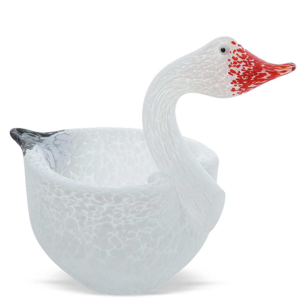 New for their 2020 Studio Line, this hand-blown glass swan bowl is avaliable in four color options: Yellow, Mint, Pink, or White.