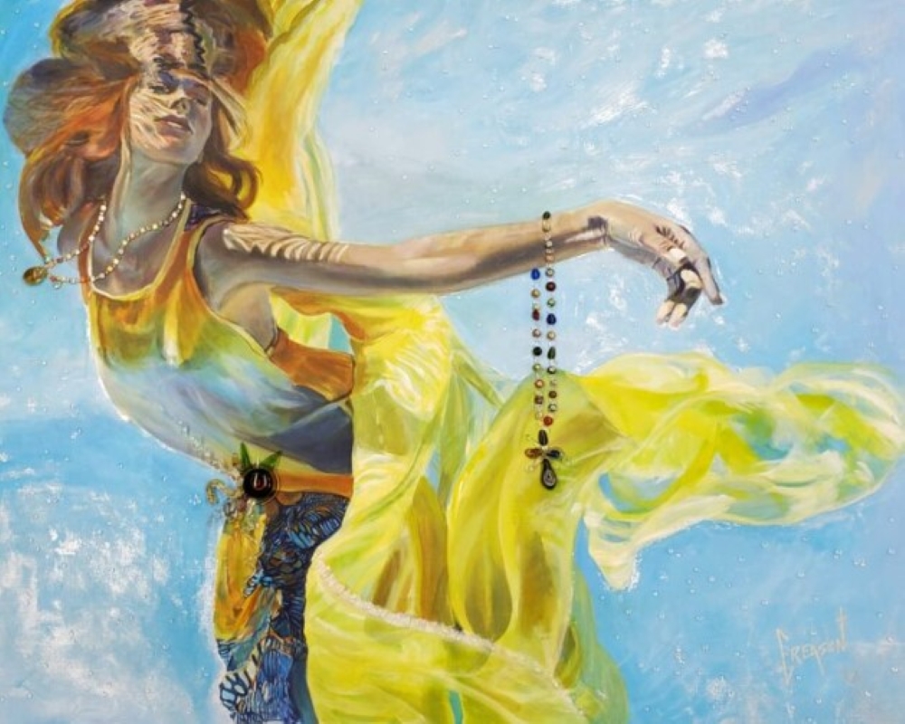 Creason’s works will invoke passion, boundless love, color and awe. His wife is his muse and main inspiration, always motivating him to create artwork that he might not have on his own. Creason chooses to depict women to spotlight their inner and outer strengths, beauty, and mystery. Using found jewelry, hand-blown glass, and garments to embellish his paintings, no two will ever be the same, but will always leave you inspired and entranced by his use of color.