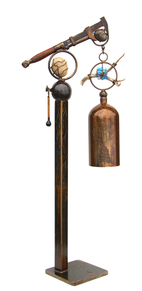 Doug Adams started working for a large steel mill. He quickly became entranced by the process of taking recycled metal from its simple form and making a new useable product. From the 65 ton electric arc furnaces spewing out molten steel, to the continuous caster cutting steel weighing 1.5 tons into 25’ lengths, to the final result of dozens of marketable steel shapes, Doug fell in love with steel. The work was hot, dirty and often times dangerous to perform. Fast forward 30 years, and Doug Adams’ experiences in the steel industry have come to inform all of his one-of-a-kind sculptural bells.