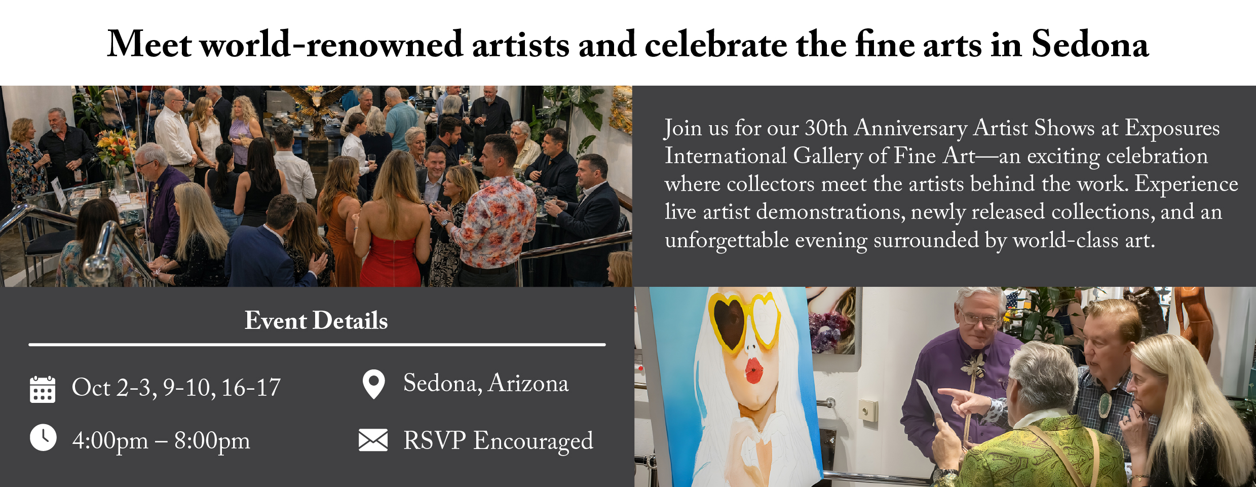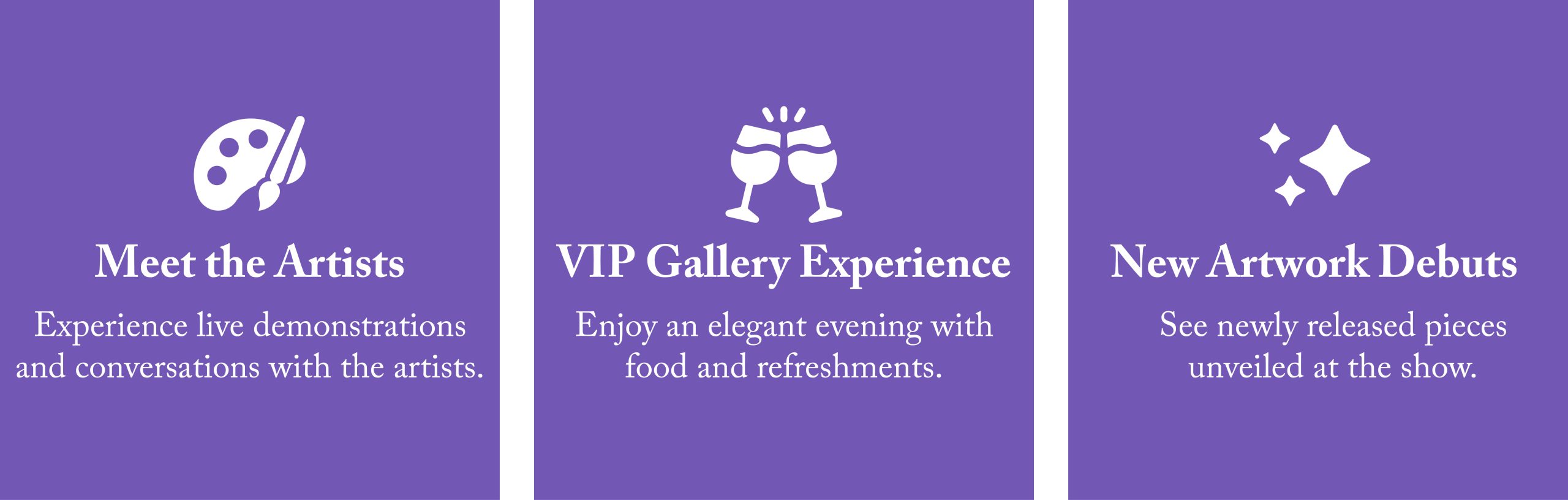 The Artist Shows offer a rare opportunity to engage directly with the artists – gaining insights into their inspiration, passion, and process. Live demonstrations and exclusive show promotions are jest a couple of the factors that set these shows apart. In celebration of our 30th anniversary, this year’s shows promise to be especially extraordinary.